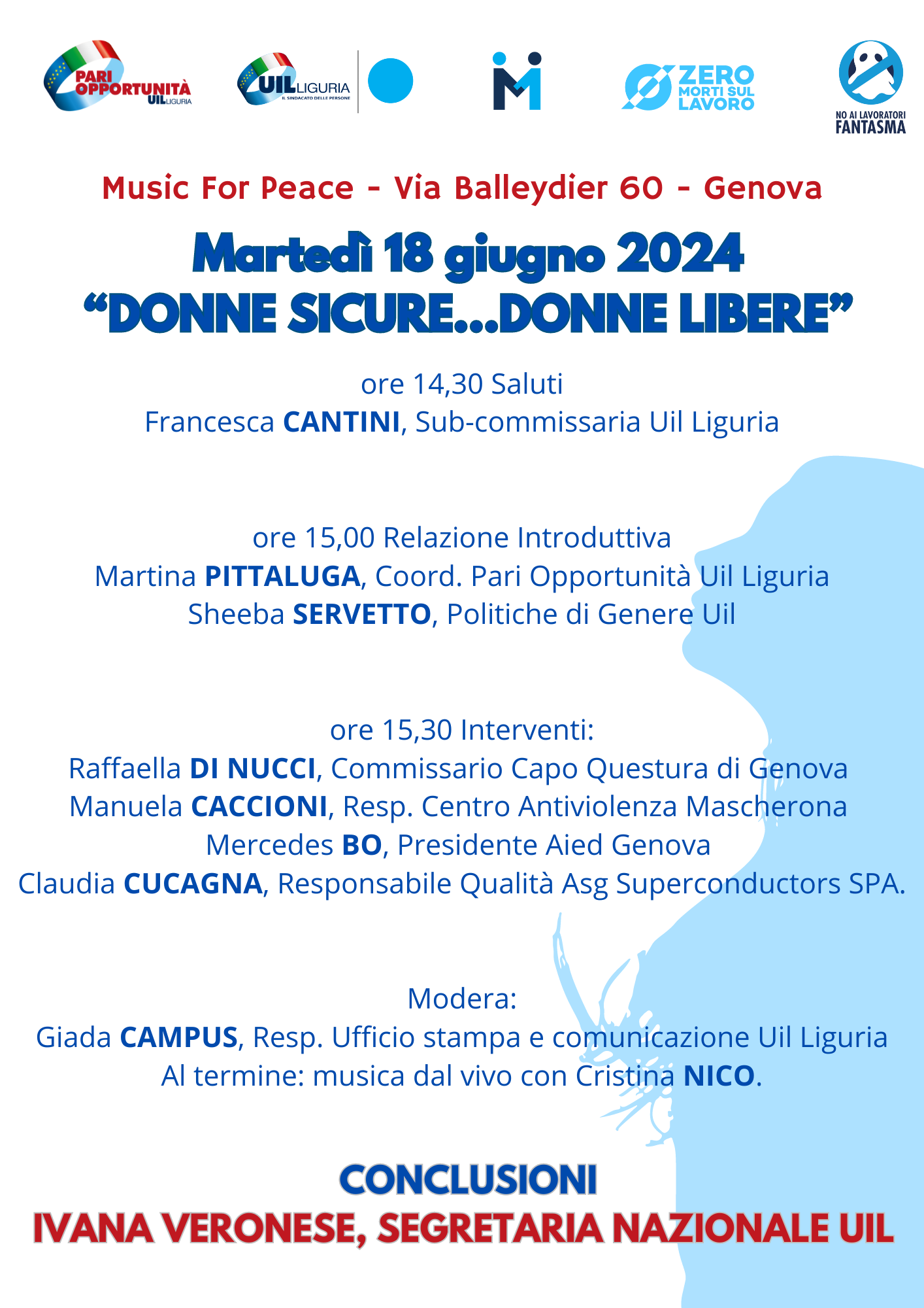 “Donne sicure…donne libere” nasce dall’esigenza della Uil Liguria di proseguire il percorso intrapreso sul contrasto alle violenze e alle molestie nei luoghi di lavoro, così come nella vita pubblica e privata delle donne.