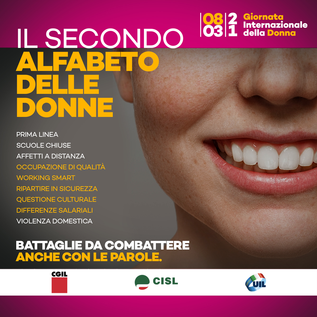 Carissime/i come già annunciato vi confermiamo l’appuntamento unitario dell’8 marzo che, in continuità con quello dello scorso anno, sospeso a causa Covid si intitolerà: Il secondo Alfabeto delle Donne.
