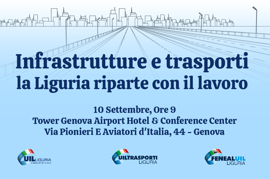 Uil Liguria, Uiltrasporti Liguria e Fenel Uil hanno, quindi, organizzato un evento: “Infrastrutture e trasporti: la Liguria riparte dal lavoro” per ricominciare a sperare.