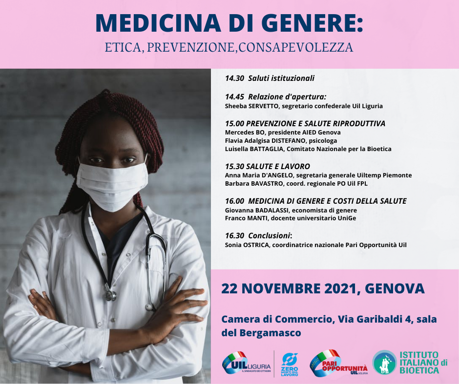 Si svolgerà a Genova un convegno organizzato dal Coordinamento Pari Opportunità e Politiche di Genere della Uil Liguria dedicato alla medicina di genere tra etica, prevenzione e consapevolezza. Fattori come il genere, l’ambiente, gli stili di vita e le condizioni socio-economiche determinano la salute di un individuo. A queste differenze corrispondono prevenzione e orientamento terapeutico differenti. “È importante cominciare un percorso informativo e formativo che possa portare la medicina di genere ad essere una vera e propria disciplina degli studi in medicina e psicologia – spiega Sheeba Servetto, segretaria regionale confederale Uil Liguria e responsabile del coordinamento ligure delle Pari Opportunità – Il nostro territorio ha una popolazione femminile longeva, vogliamo accompagnare l’intero percorso di vita con un approccio alla salute consapevole”. L’iniziativa prevede tre Panel di approfondimento che comprenderanno le tre fasi della vita del genere femminile. Il primo sarà dedicato alla prevenzione e alla salute riproduttiva delle donne e vedrà gli interventi di: Mercedes Bo, presidente Aied Genova – Luisella Battaglia, membro Comitato nazionale Bioetica – Flavia Adalgisa Distefano, psicologa. Il secondo Panel parlerà di lavoro e salute con Anna Maria D’Angelo, segretaria generale Uiltemp Piemonte e Barbara Bavastro, coordinatrice regionale Pari Opportunità Uil Fpl Liguria. Il terzo Panel riguarderà i la medicina di genere e i costi della salute e vedrà la presenza di Giovanna Badalassi, economista e Franco Manti, sociologo e docente universitario Unige. Chiuderà il convegno Sonia Ostrica, coordinatrice nazionale Pari Opportunità della Uil.