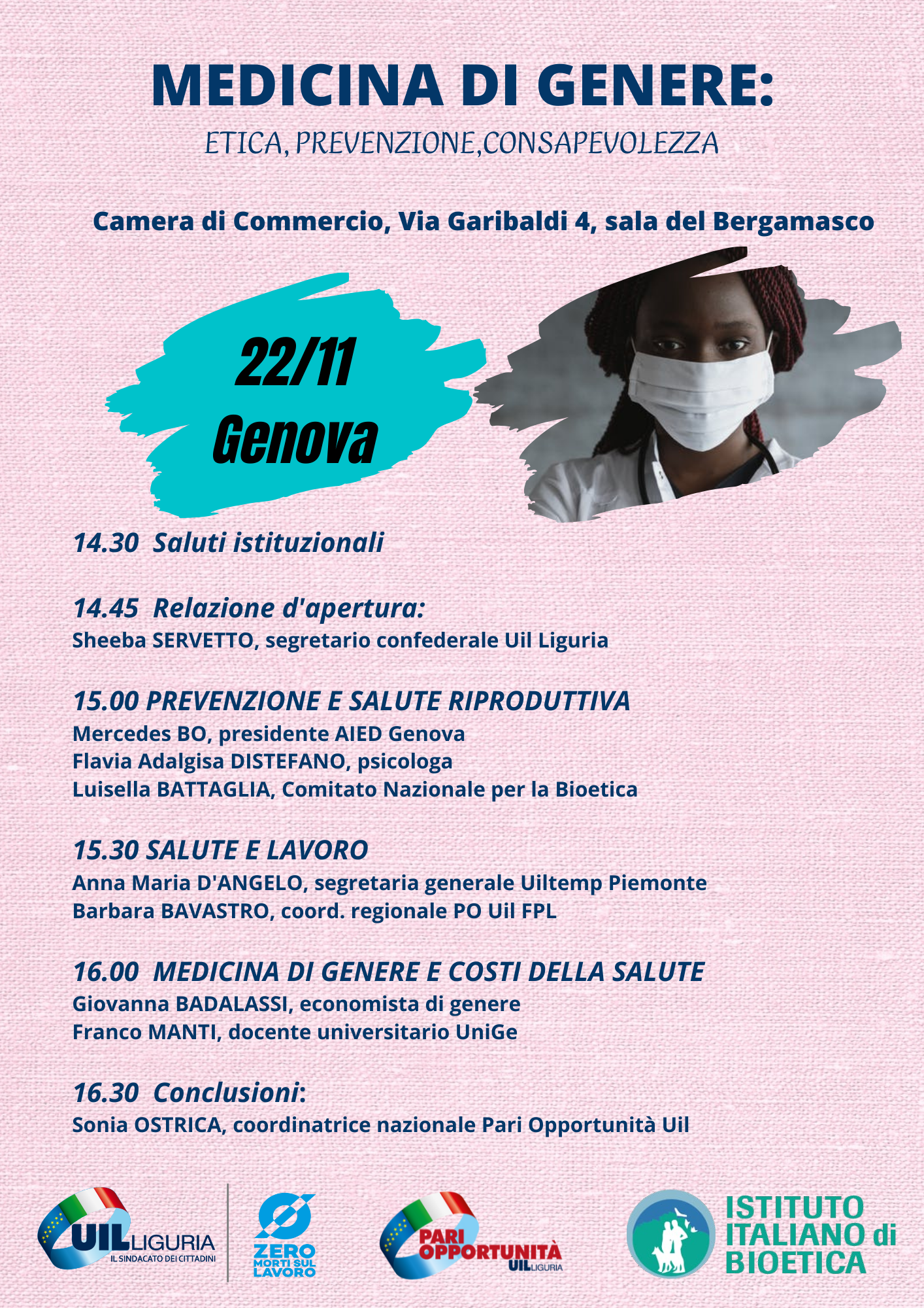 Si svolgerà a Genova un convegno organizzato dal Coordinamento Pari Opportunità e Politiche di Genere della Uil Liguria dedicato alla medicina di genere tra etica, prevenzione e consapevolezza. Fattori come il genere, l’ambiente, gli stili di vita e le condizioni socio-economiche determinano la salute di un individuo. A queste differenze corrispondono prevenzione e orientamento terapeutico differenti. “È importante cominciare un percorso informativo e formativo che possa portare la medicina di genere ad essere una vera e propria disciplina degli studi in medicina e psicologia – spiega Sheeba Servetto, segretaria regionale confederale Uil Liguria e responsabile del coordinamento ligure delle Pari Opportunità – Il nostro territorio ha una popolazione femminile longeva, vogliamo accompagnare l’intero percorso di vita con un approccio alla salute consapevole”. L’iniziativa prevede tre Panel di approfondimento che comprenderanno le tre fasi della vita del genere femminile. Il primo sarà dedicato alla prevenzione e alla salute riproduttiva delle donne e vedrà gli interventi di: Mercedes Bo, presidente Aied Genova – Luisella Battaglia, membro Comitato nazionale Bioetica – Flavia Adalgisa Distefano, psicologa. Il secondo Panel parlerà di lavoro e salute con Anna Maria D’Angelo, segretaria generale Uiltemp Piemonte e Barbara Bavastro, coordinatrice regionale Pari Opportunità Uil Fpl Liguria. Il terzo Panel riguarderà i la medicina di genere e i costi della salute e vedrà la presenza di Giovanna Badalassi, economista e Franco Manti, sociologo e docente universitario Unige. Chiuderà il convegno Sonia Ostrica, coordinatrice nazionale Pari Opportunità della Uil.
