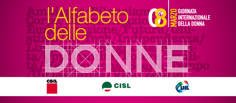 Per la Giornata Internazionale della Donna ma abbiamo deciso di mantenere e rilanciare i contenuti di questo giorno attraverso un manifesto unitario che alleghiamo in tutte le sue varianti di stampa e pubblicazione digitale. Quest’anno, per l’8 marzo, abbiamo pensato ad un “Alfabeto delle Donne” che attraverso alcune delle tante parole che lo rappresentano possa significare e riconoscere l’indiscutibile protagonismo delle donne nella vita di ognuno nel lavoro, nel sociale e nelle comunità. Un protagonismo che va valorizzato, rispettato e sostenuto ogni giorno, attraverso un linguaggio corretto, un’azione continua di giustizia sociale e il contrasto ovunque di ogni forma di violenza.