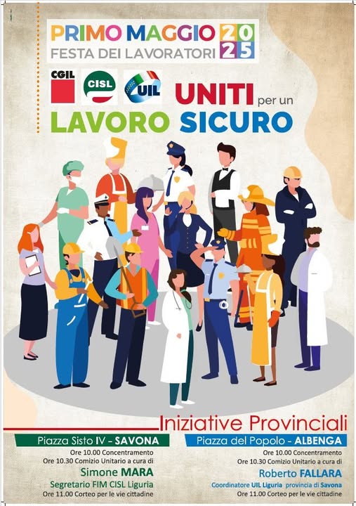Ore 10.30 Comizio unitario a cura di Roberto Fallara Coordinatore Uil Liguria per la provincia di Savona.