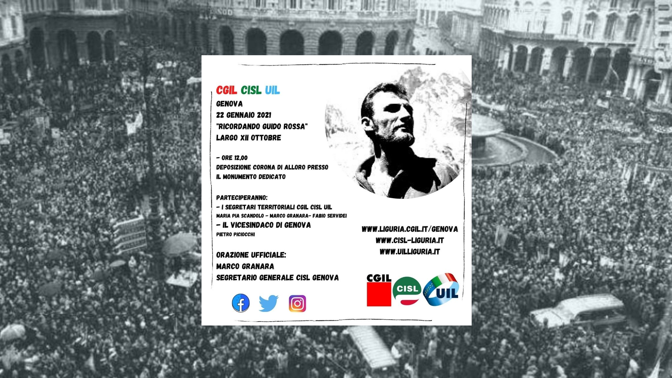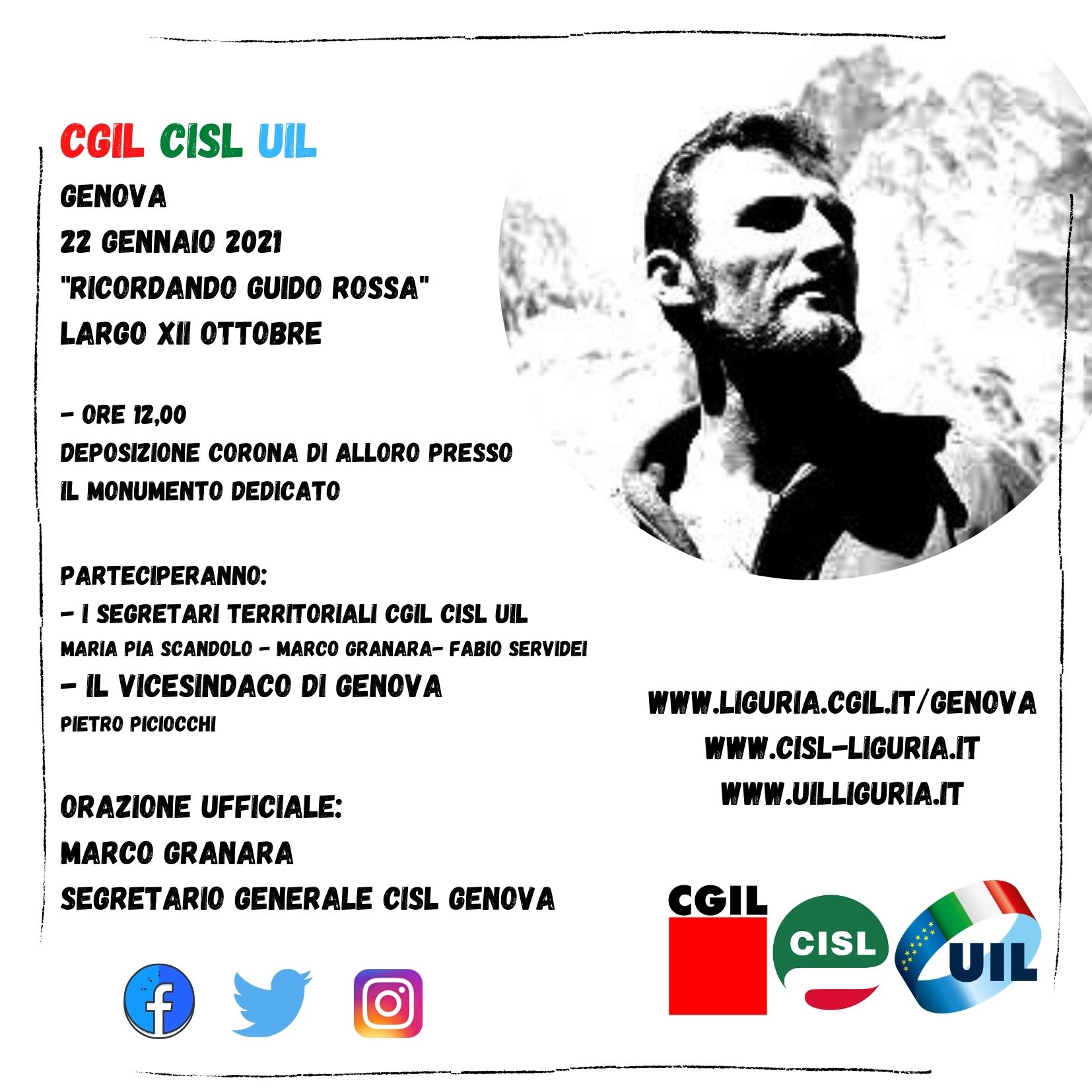 Cgil Cisl Uil ricordano Guido Rossa, l’operaio dell’Italsider di Genova ucciso dalle brigate rosse il 24 gennaio del 1979. L’appuntamento è per venerdì 22 gennaio alle ore 12,00 presso il monumento in Largo XII Ottobre, luogo dove ogni anno viene deposta una corona di alloro dai sindacati confederali.L’evento si svolgerà in forma ridotta in osservanza delle prescrizioni anti Covid. I sindacati confederali si riconoscono negli ideali di Guido Rossa, personalità che le OO.SS indicano alle nuove generazioni come inesauribile esempio per la costruzione di legalità e giustizia sociale.Parteciperanno alla commemorazione Maria Pia Scandolo, segretaria organizzativa Camera del Lavoro di Genova, Marco Granara, segretario generale Cisl Genova , Fabio Servidei, segretario organizzativo Uil Liguria .
