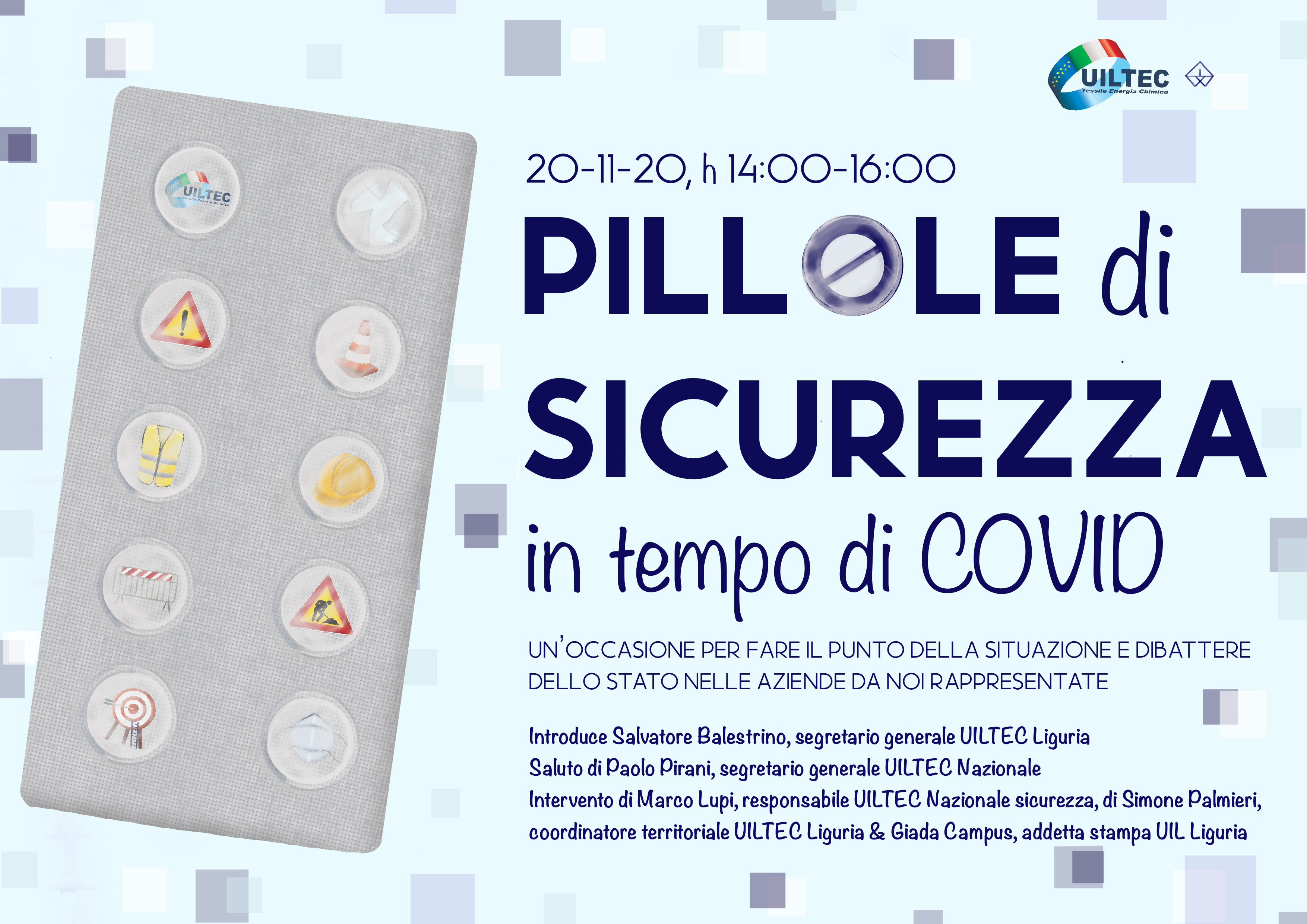 Il Segretario generale nazionale Uiltec partecipa a “PILLOLE DI SICUREZZA”, l’evento organizzato dalla Uiltec della Liguria su salute e sicurezza all’interno dei luoghi di lavoro con e senza Covid.