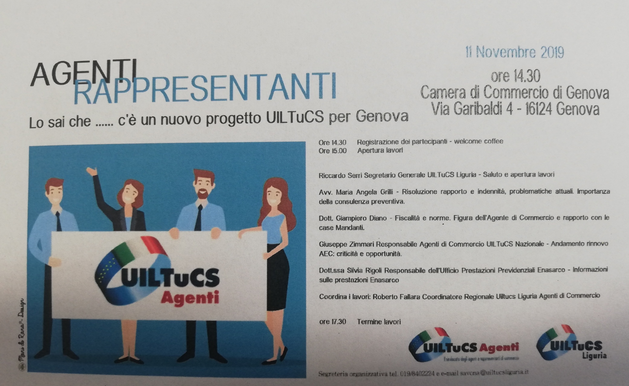 “Agenti e Rappresentanti: il nuovo progetto UILTUCS Liguria” che si rivolge ai 10 mila agenti operanti in Liguria.