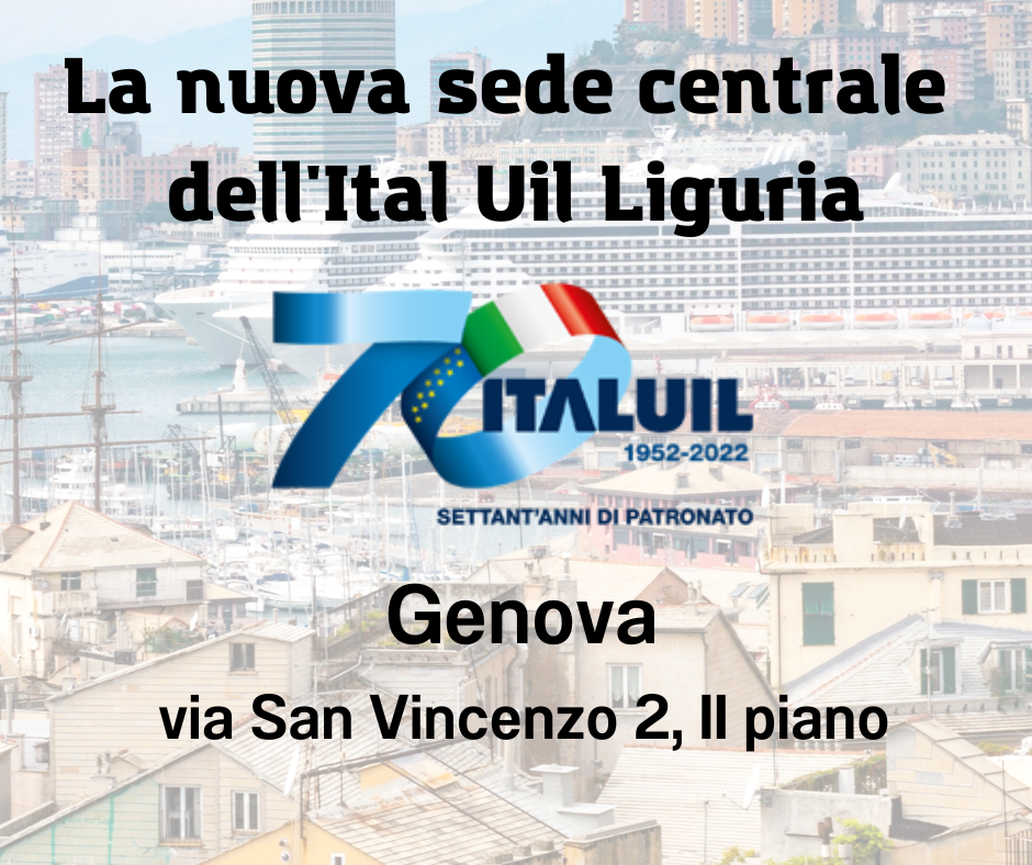 Da oggi la sede centrale dell’Ital, il patronato della Uil Liguria, cambia sede: i nostri uffici si trovano in via San Vincenzo 2 (Torre San Vincenzo), al 2°piano!!!