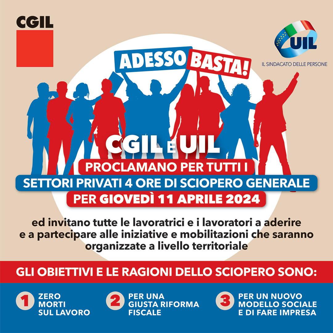 Zero Morti sul Lavoro, una giusta riforma fiscale, un nuovo modello sociale di fare impresa sono le tematiche intorno alle quali Cgil e Uil hanno proclamato 4 ore di sciopero generale nazionale in tutti i settori privati…